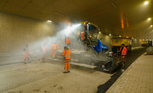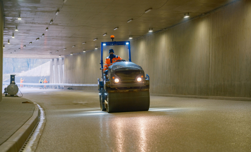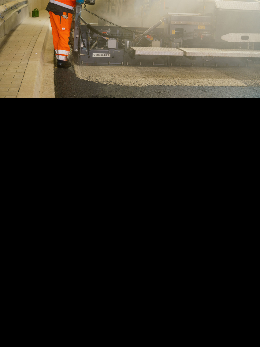 Afin de préserver durablement la teinte et l’aspect de l’enrobé blanc dans le tunnel, un nettoyage régulier par balayeuse aspiratrice est recommandé.