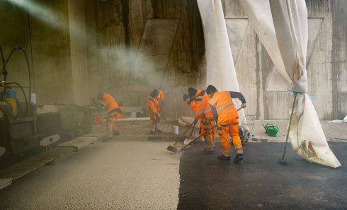 La mise en œuvre du SMA 11 P COLOR a été réalisée sur une demi-journée, avec une quantité totale d’environ 125 tonnes, dans un environnement confiné nécessitant des mesures techniques particulières :